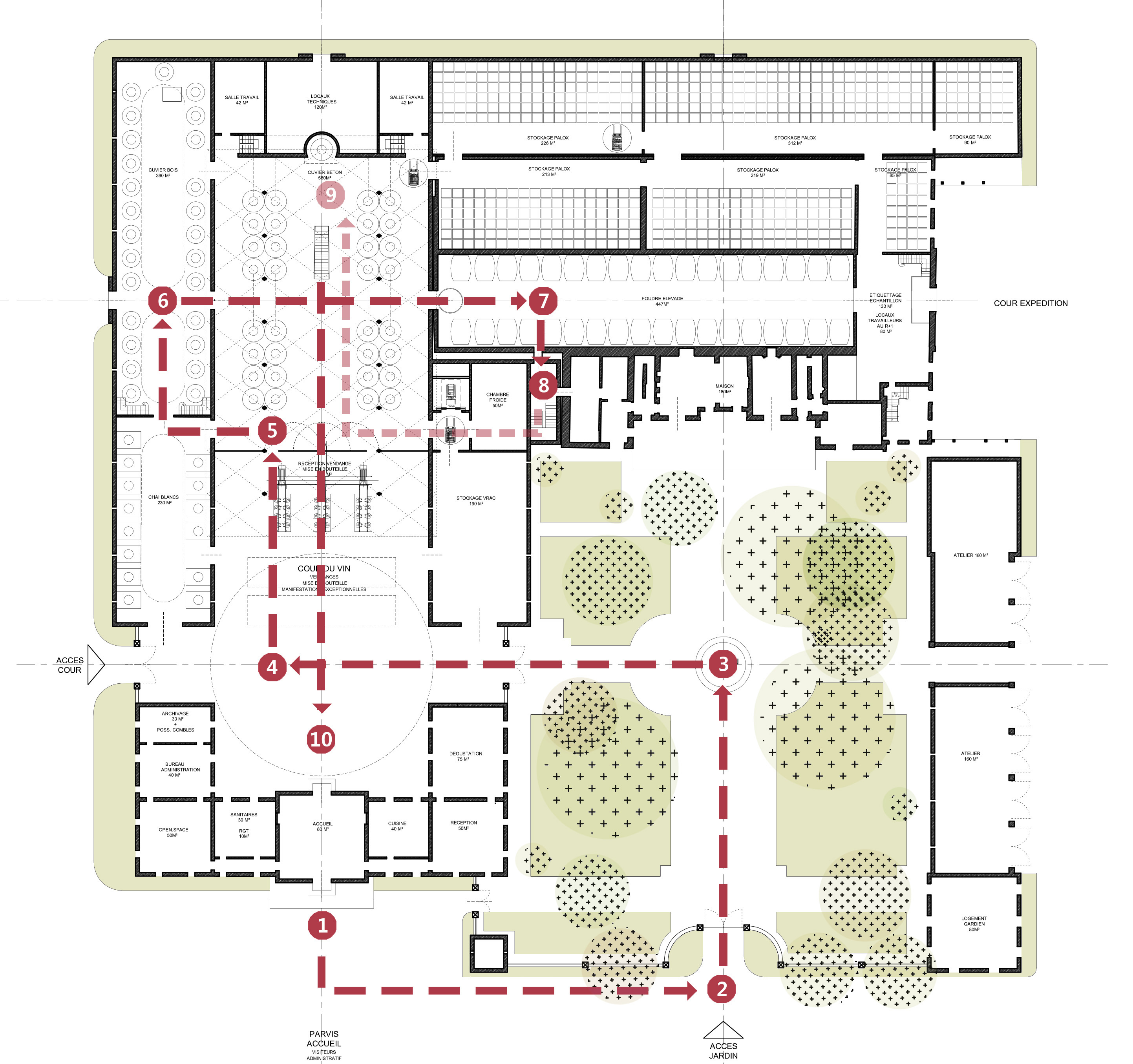 La propriété complète son outil de production avec la création d’un grand cuvier et d’une cour de travail permettant de desservir les bâtiments existants et constructions nouvelles.